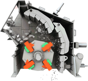 反擊式破碎機(jī)的工作原理和錘式破碎機(jī)相近,都是利用高速回轉(zhuǎn)的錘頭沖擊物料而使之破碎的,不過兩者的破碎過程卻不盡相同。當(dāng)物料進(jìn)入破碎腔后即受到高速回轉(zhuǎn)的板錘的沖擊而進(jìn)行選擇性破碎。物料從沖擊過程中獲得巨大的動能,并以高速拋向第一級反擊板,由于反擊板的反擊作用,物料再次受到破碎,被反擊板彈回來的物料又再次受到板錘的沖擊,繼續(xù)重復(fù)上述破碎過程。之后,此破碎物料又同樣以高速被拋向第二級反擊板,進(jìn)一步得到破碎。這樣,物料經(jīng)過板錘、反擊板的連續(xù)多次撞擊作用以及物料之間的相簿碰撞作用,便不斷沿自身的節(jié)理面產(chǎn)生裂縫、松散而被破碎。其力度小于板錘和反擊板之間的縫隙時,就從機(jī)器下部排出成為合格產(chǎn)品。在砂石廠聯(lián)破作業(yè)一般配置在顎式破碎機(jī)后面。