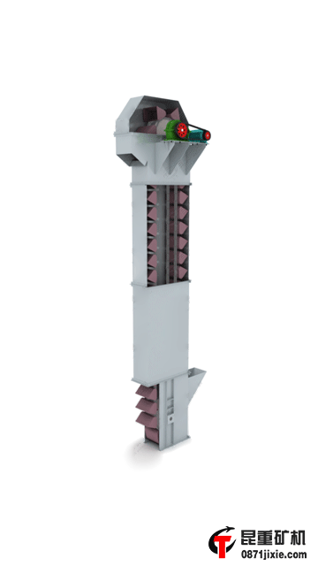 斗式提升機是利用均勻固接于無端牽引構件上的一系列料斗,豎向提升物料的連續輸送機械。分為環鏈、板鏈和皮帶三種。
