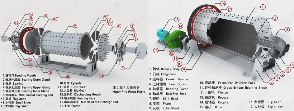 濕式格子型球磨機組裝圖: